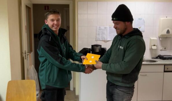 Onlangs heeft onze stagiair Wibe zijn certificaat Veilig Werken met de Hydraulische Graafmachine en zijn hijsbewijs behaald. Om dit te vieren hebben we hem verrast met een bon van de McDonald’s. Misschien niet de meest gezonde keuze… maar wél zijn favoriet.